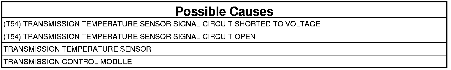 - Repair the (T54) Transmission Temperature Sensor Signal circuit for an open.