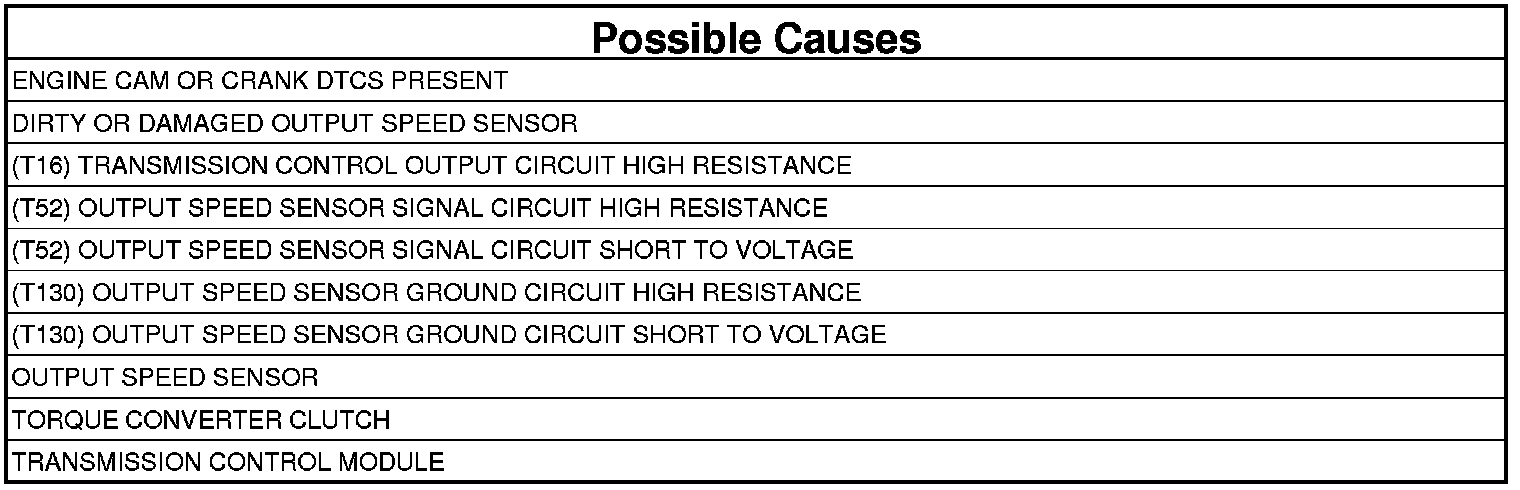 - Repair the (T130) Output Speed Sensor Ground circuit for a short to voltage