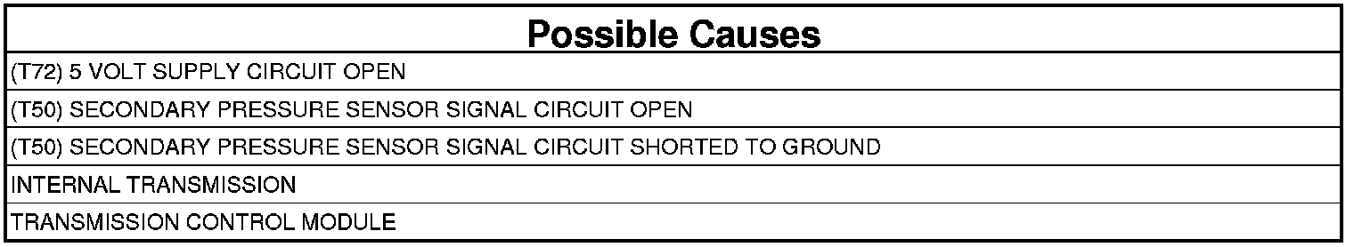 - Repair the (T50) Secondary Pressure Sensor Signal circuit for an open or high resistance.
