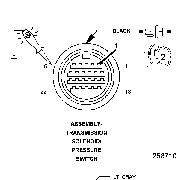 5. Using a test light connected to ground, check the (T20) Line Pressure Solenoid Control circuit in the Transmission Solenoid/Pressure Switch Assembly harness connector.