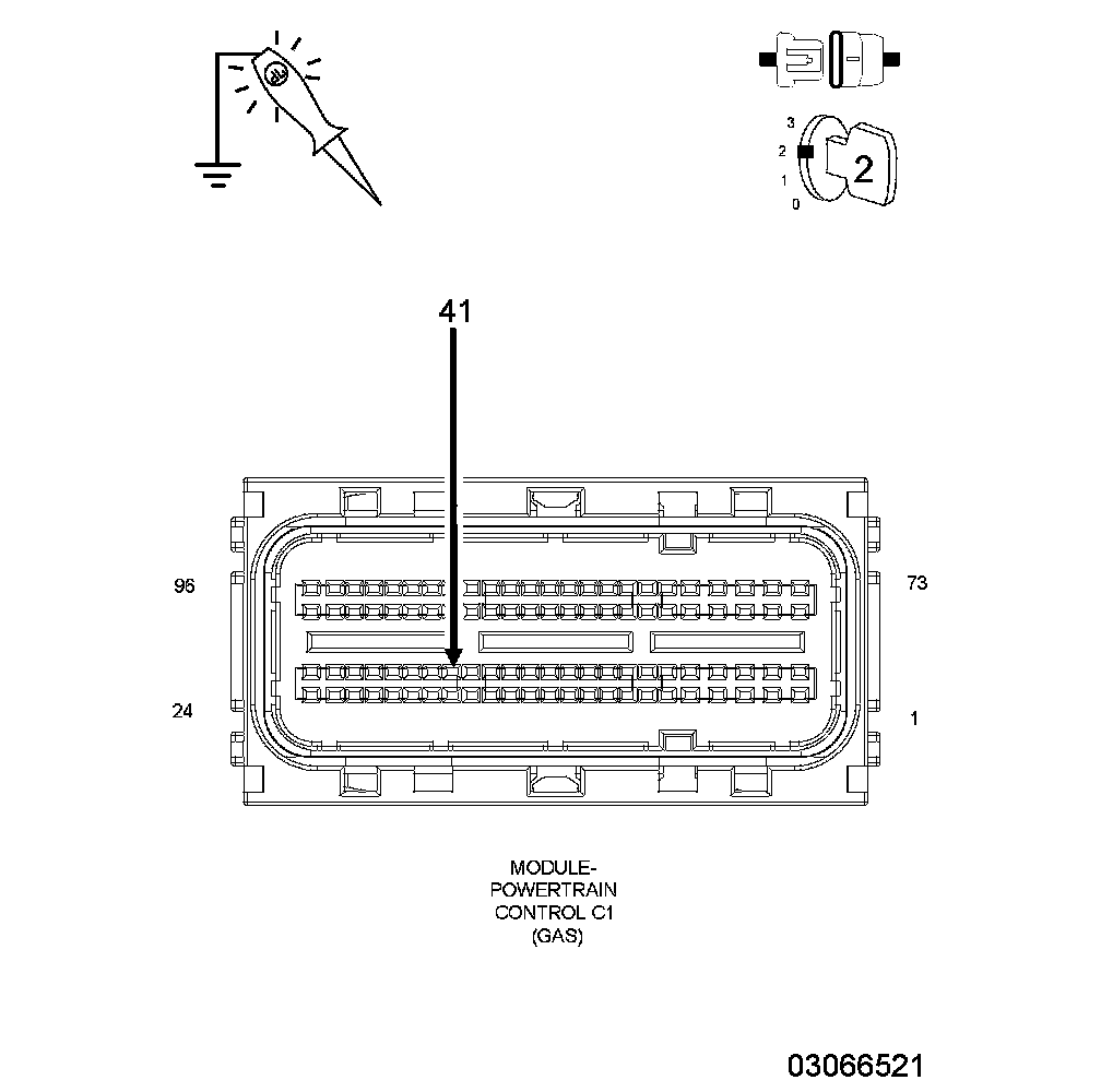 1. Using the wiring diagram/schematic as a guide, inspect the wiring and connectors between the Stop Lamp Switch and the Powertrain Control Module (PCM).