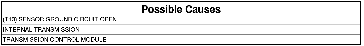 The Oil Temperature Sensor , Primary and Secondary Oil Pressure Sensor and the Input Speed Sensor use a common ground circuit that returns to the Transmission Control Module (TCM). If all of these circuits show an open (high voltage) the DTC will set.