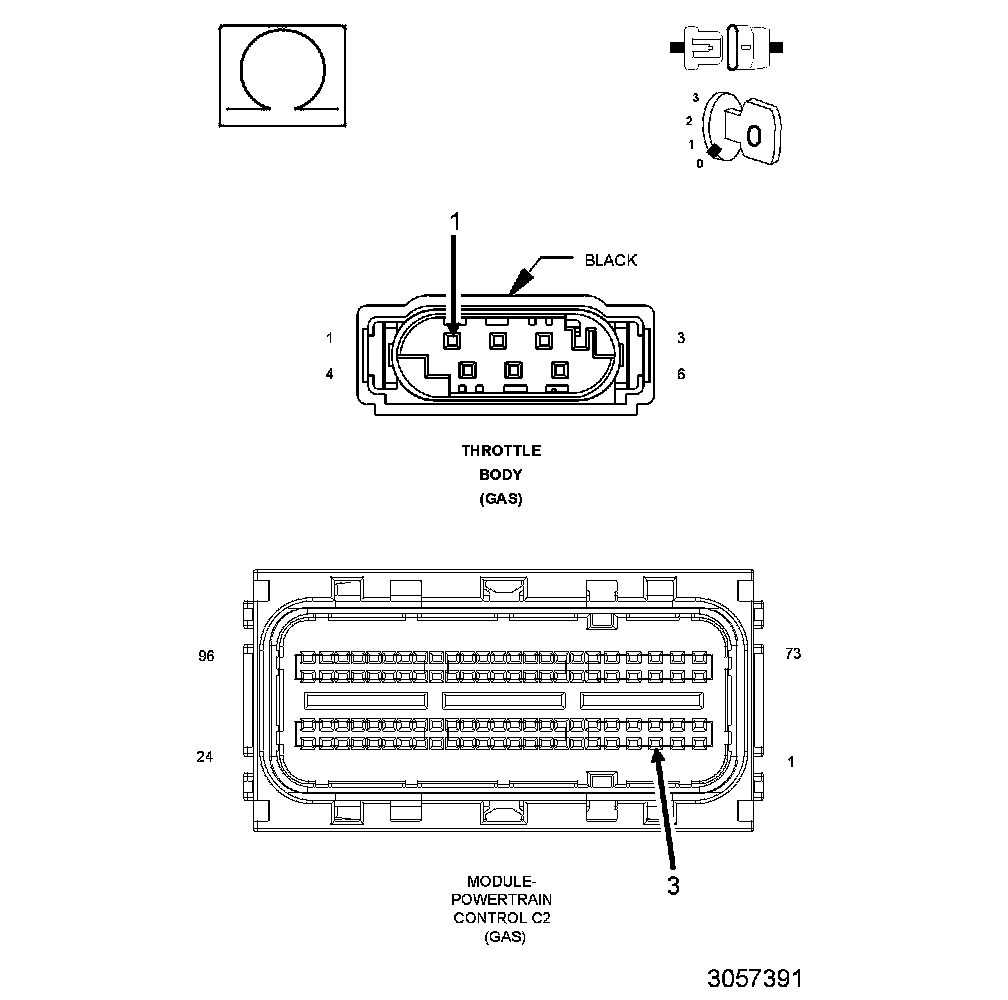 1. Using the wiring diagram/schematic as a guide, inspect the wiring and connectors between the Throttle Body and the Powertrain Control Module (PCM).