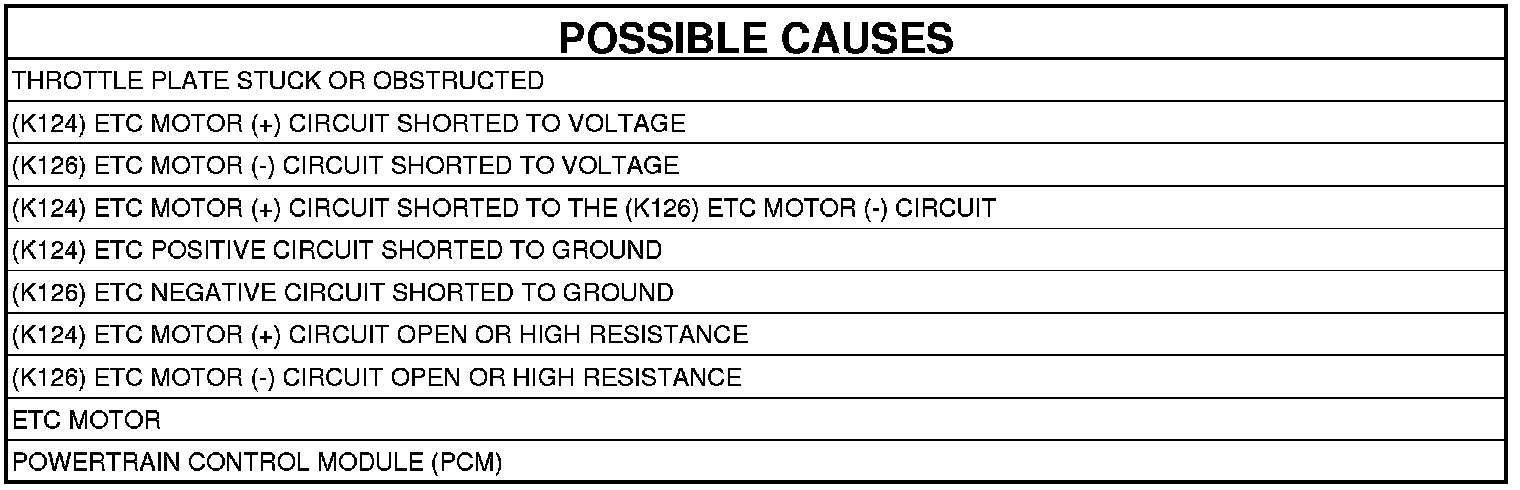 5. (K124) ETC MOTOR (+) CIRCUIT SHORTED TO THE (K126) ETC MOTOR (-) CIRCUIT