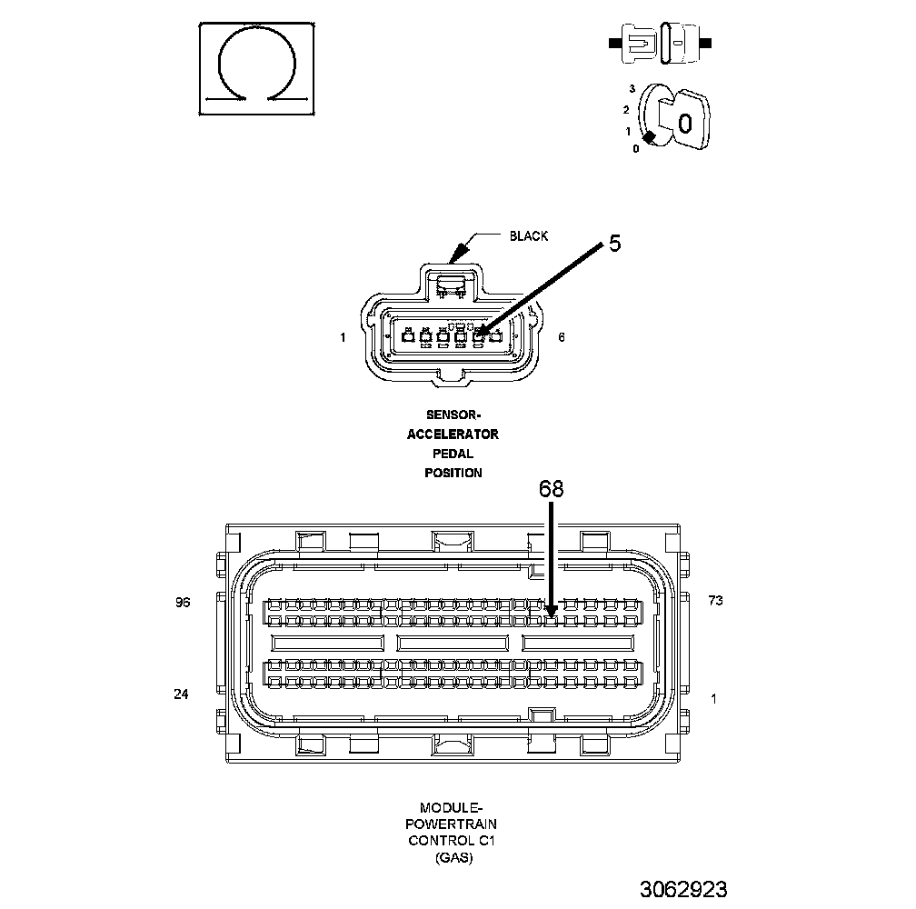 1. Using the wiring diagram/schematic as a guide, inspect the wiring and connectors between the Accelerator Pedal Position Sensor and the Powertrain Control Module (PCM).