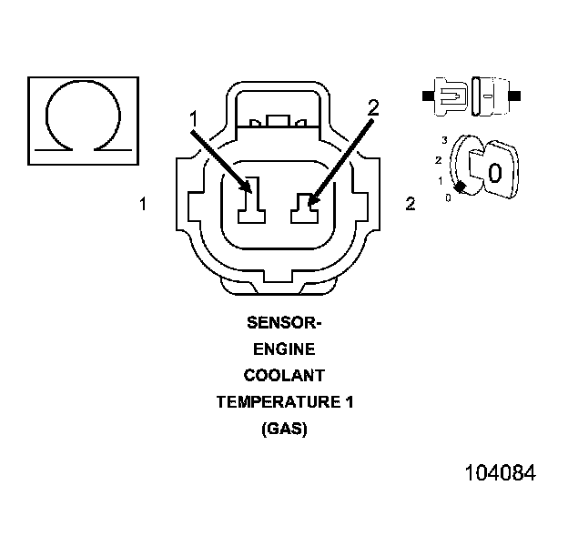 1. Measure the resistance between the (K2) ECT 1 Signal circuit and the (K900) Sensor Ground 1 circuit in the Engine Coolant Temperature Sensor 1 harness connector.
