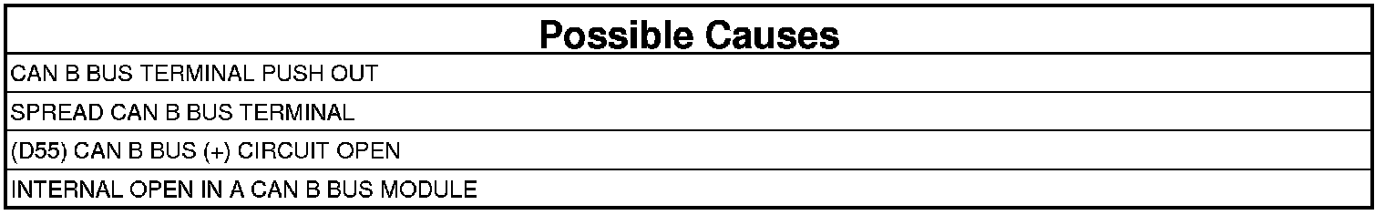 - Repair the (D55) CAN B Bus (+) circuit for an open between the next common splice and the module that has the red "X" displayed next to it. Use the wiring diagrams to help you determine where the open condition exists.