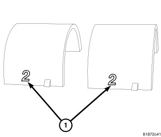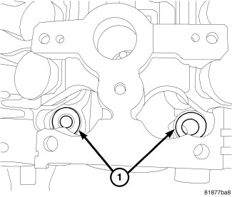 15. The front camshaft bearing cap (1) is numbered (2) either one, two, or three, this corresponds to the select fit front exhaust camshaft bearing to use.