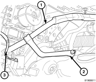 4. Disconnect the fuel line (3) from the fuel rail Service and Repair.