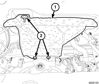 NOTE: The lower maniverter heatshield (1) must be removed from the maniverter before the maniverter is removed from the vehicle.