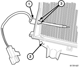 NOTE: It is not necessary to remove and disassemble the HVAC housing to service the evaporator temperature sensor. The evaporator temperature sensor can be removed for service from underneath the instrument panel.