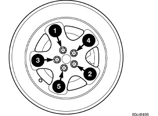 6. Progressively tighten all wheel mounting nuts in the proper sequence shown. Tighten nuts to a final torque of 135 Nm (100 ft. lbs.).