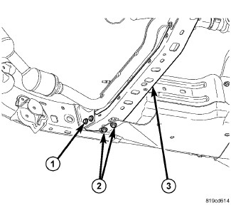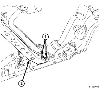 1. Install the crossmember (2) and install the bolts (1).