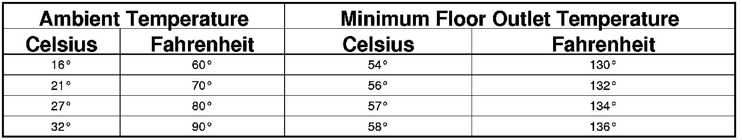 Engine coolant is delivered to and from the heater core through two heater hoses. With the engine idling at normal operating temperature, set the temperature control to the full hot position, the mode control to the floor position, and the blower motor control to the highest speed position. Using a test thermometer, check the temperature of the air being discharged at the front floor outlets. Compare the test thermometer reading to the Heater Temperature Reference chart.