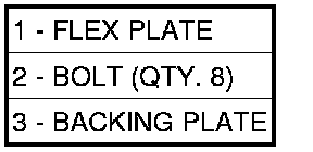 1. Position the flex plate (1) with backing plate (3) on the crankshaft.