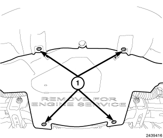6. Position the belly pan to the under side of the vehicle and install the retainers (1).