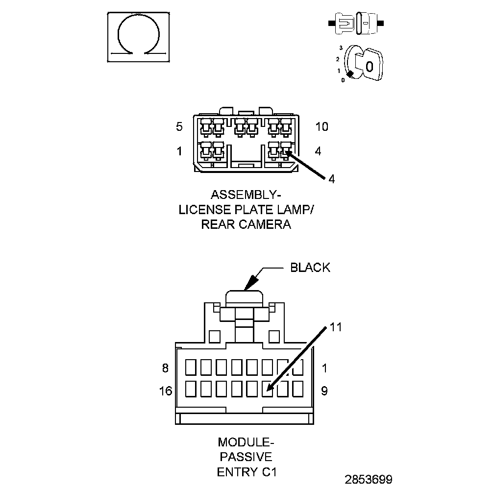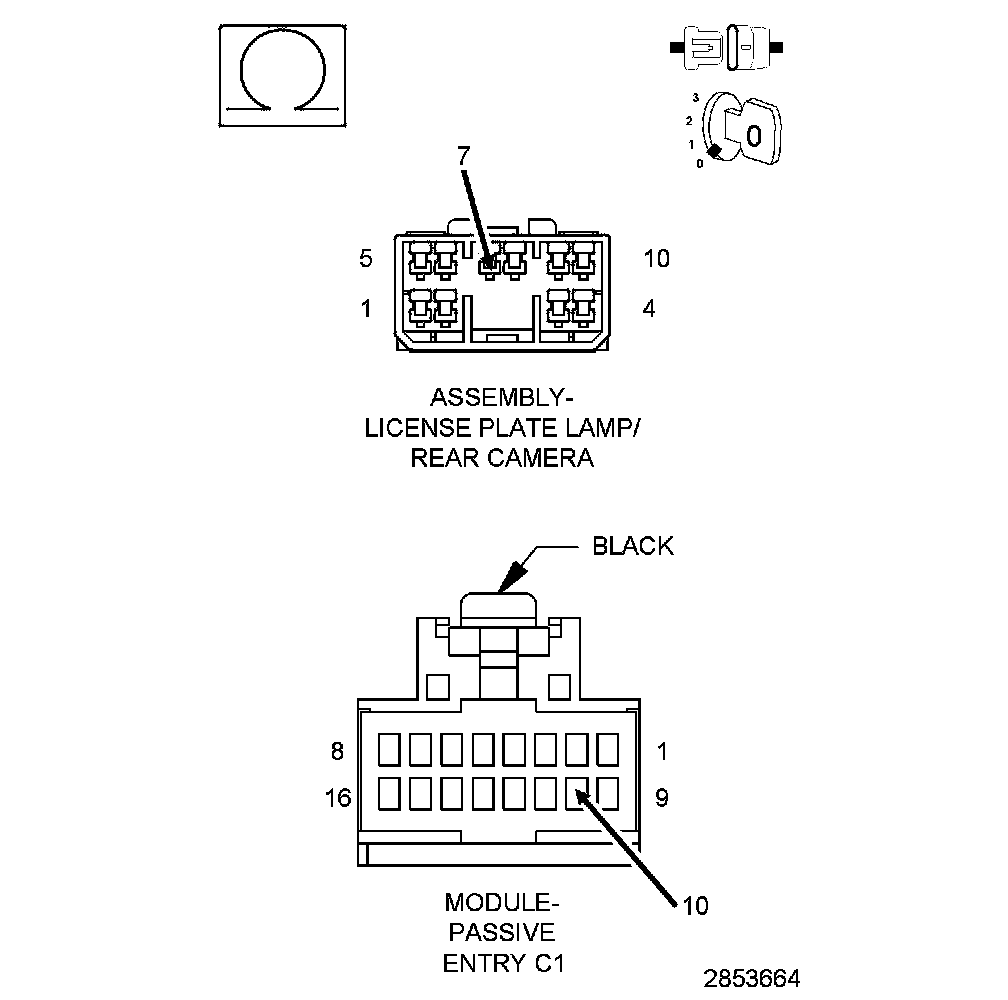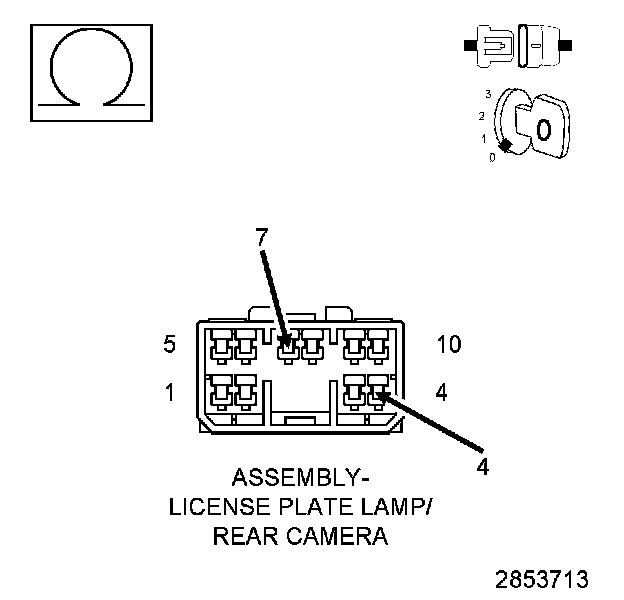 1. Measure the resistance between ground and the (P39) PEM Liftgate Lock/Unlock Switch Return circuit in the License Plate Lamp Bar harness connector.