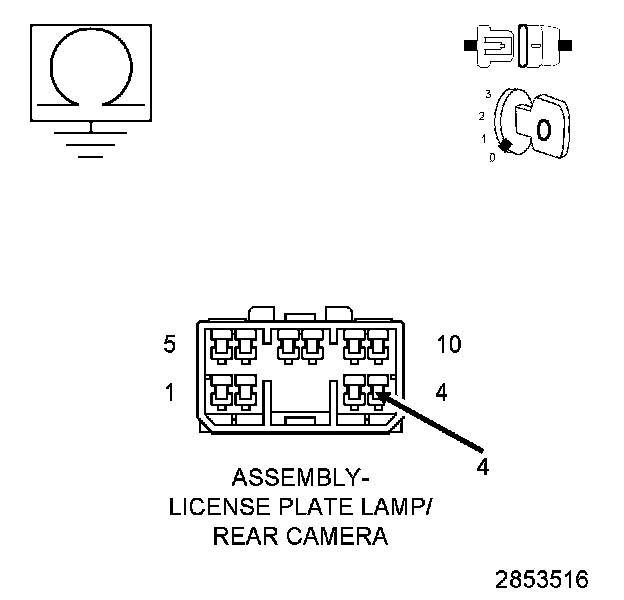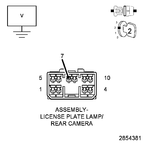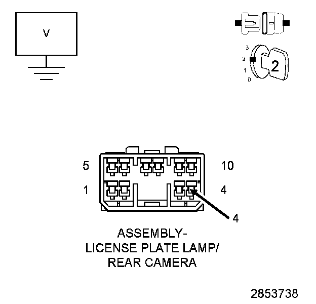 2. Measure the voltage between ground and the (P39) PEM Liftgate Lock/Unlock Switch Return circuit in the License Plate Lamp Bar harness connector.