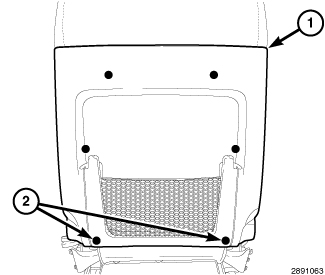 5. Position the back panel (2) back and secure the upper panel hooks (1).