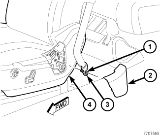 10. Install the seat belt anchor (1) and install the bolt (3).