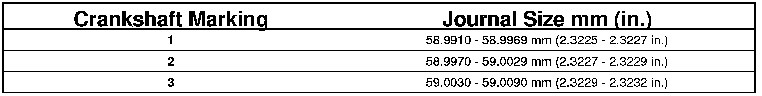 Connecting rod bearing journal diameter grade markings correspond to specific journal diameters. The chart below identifies the three crankshaft grade markings and their associated journal diameters.