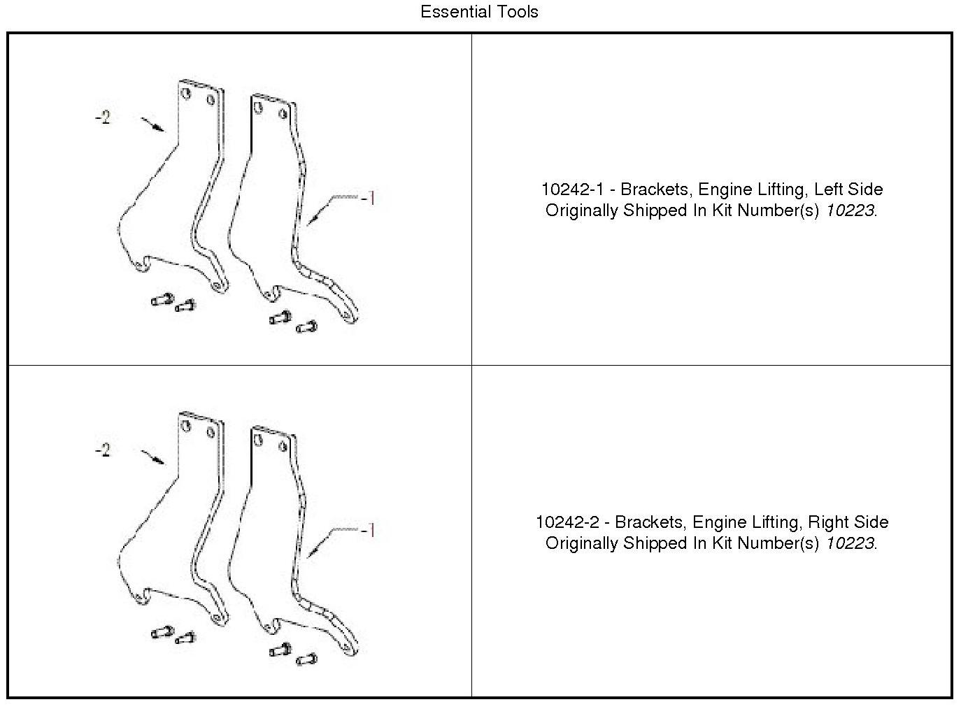 3. Install the Passenger Side Engine Lifting Bracket (1) on the RH cylinder head with bolts (2) provided with the Engine Lifting Bracket. Tighten the bolts to 21 Nm (15 ft. lbs.).