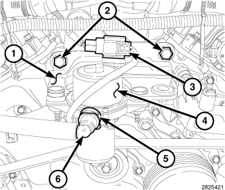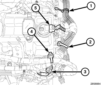 14. Connect the left Camshaft Position (CMP) sensor (5).