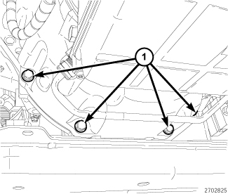 8. Install the left and right engine mount nuts (1) and tighten to 61 Nm (45 ft.lbs.).
