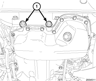 27. Install four transmission to engine oil pan bolts (1). Tighten the bolts to 55 Nm (41 ft. lbs.).