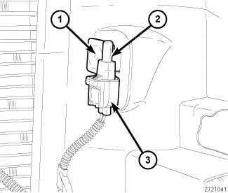 1. Position the ambient temperature sensor (2) in the vehicle and install the push pin type retainer (1).