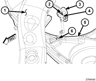 5. Remove the screw (6) that secures the sensor link bracket to the rear lower control arm.