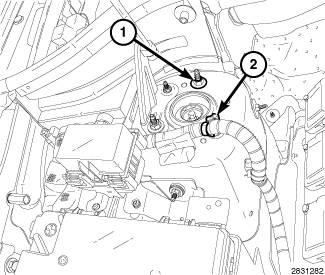 7. Install the speed sensor, and install the speed sensor bolt (2) and tighten to 10.7 Nm (95 in. lbs.).