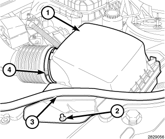 a. Press the air cleaner housing onto the body grommets and install the pushpin (2).