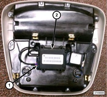 2. Connect the motion sensor (1) connector to the intrusion module (2).