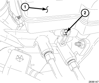 1. Disconnect the wire connector (2) from the brake fluid level sensor (3).