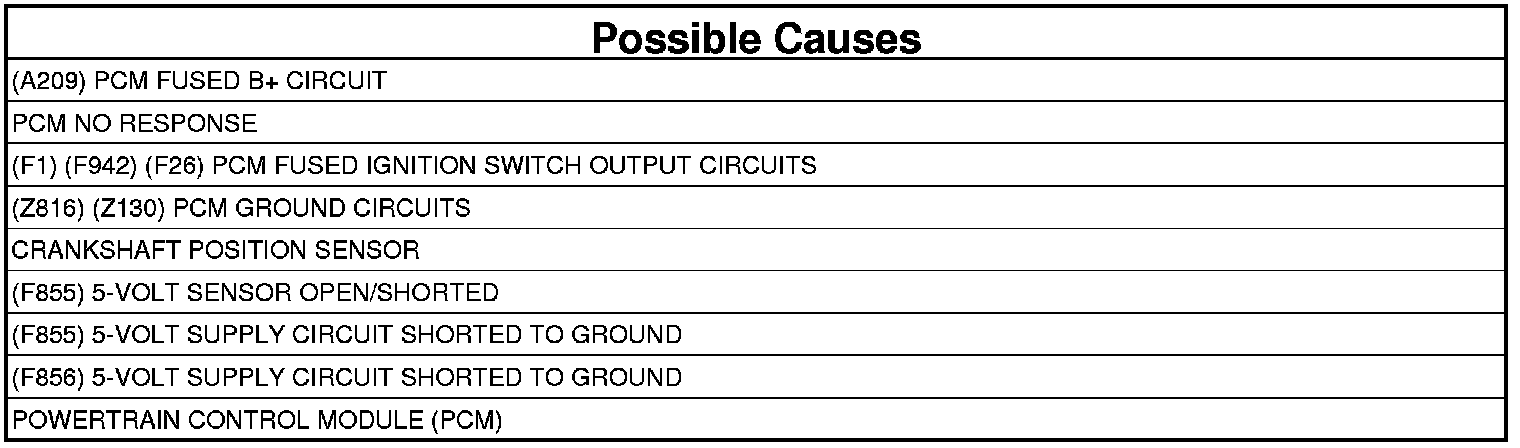 - Replace the sensor that is pulling down the (F855) 5-Volt supply.