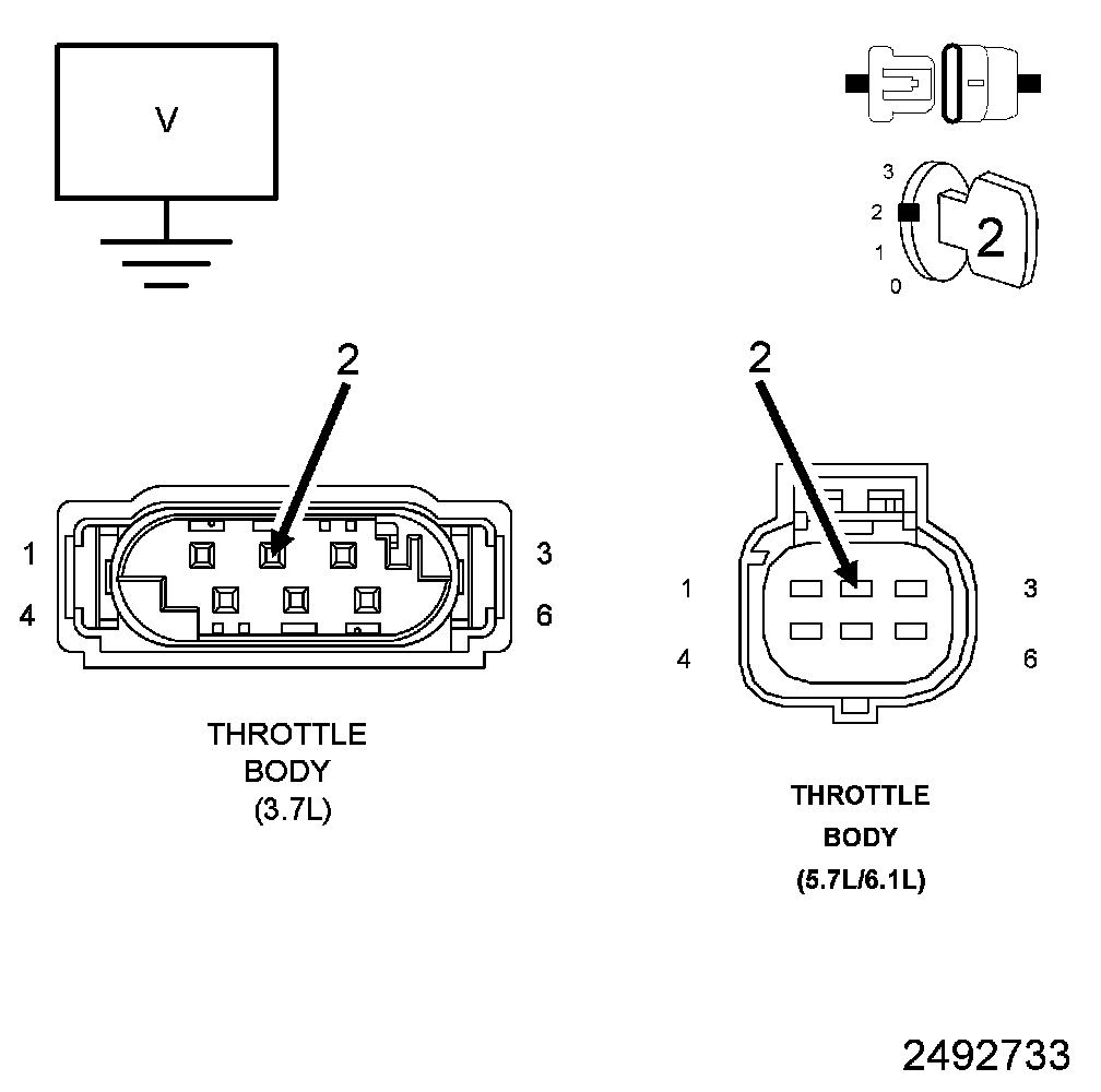 4. Measure the voltage on the (F855) 5-Volt Supply circuit in the Throttle Body harness connector.