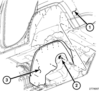 4. Install the left rear wheelhouse splash shield Splash Shield - Installation.