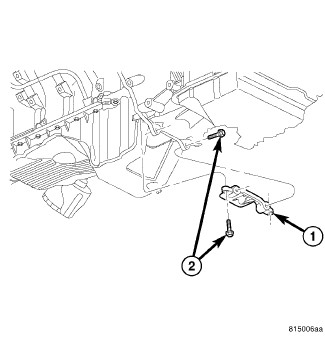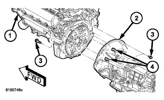 16. Install both the left and right side oil pan to transmission bolts (1), 5.7L only. Torque the bolts to 54 Nm (40 ft. lbs.).