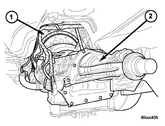 NOTE: Before aligning the transmission to the engine block fit the transmission fill tube to the vehicle.