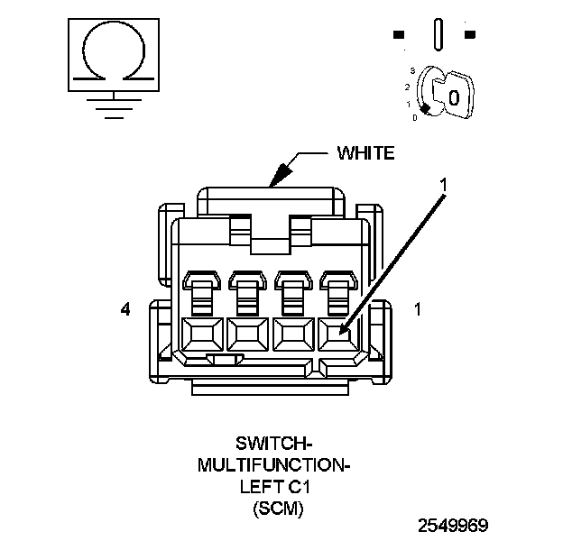 2. Measure the resistance between ground and the (Z910) Ground circuit at the Left Multifunction Switch harness connector.