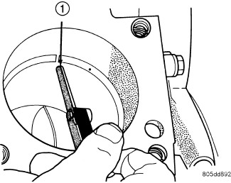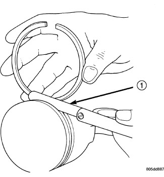 4. Using a feeler gauge (1) check the ring end gap. Replace any rings not within specification.