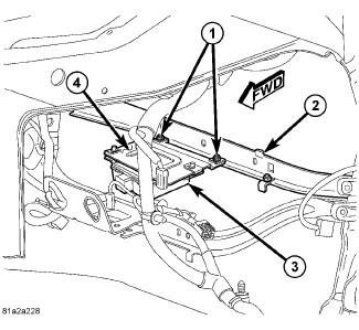 3. Position the module mounting bracket to the lower instrument panel reinforcement (2).