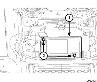 1. Connect the electrical connector and install the Hands Free Module (HFM) (1).