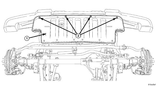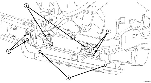 1. Install the bumper and install the inner (2) and outer support bolts (4).