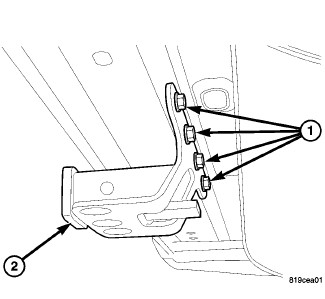 Install the hitch (2) and install the bolts (1).