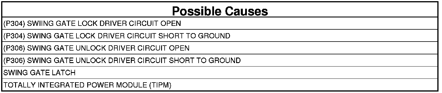 - Repair the (P304) Swing Gate Lock Driver circuit for an open.