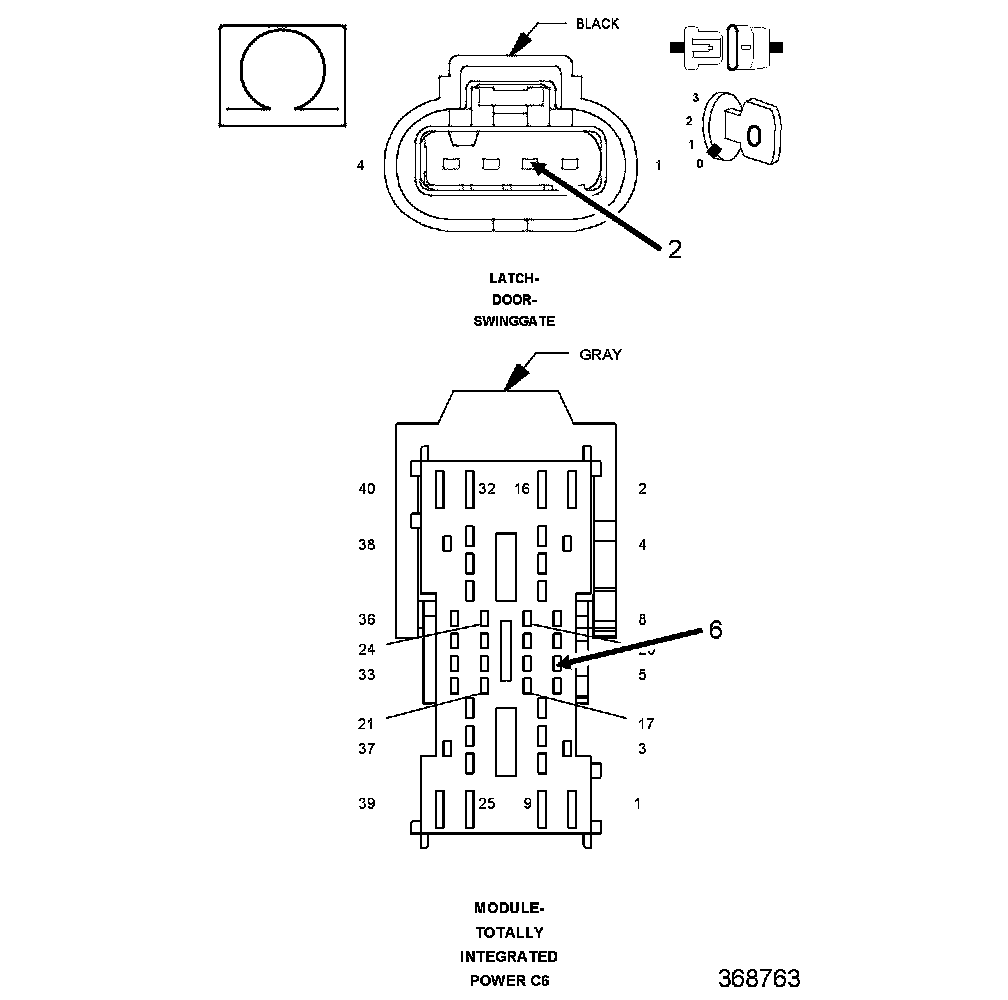 2. Measure the resistance of the (P304) Swing Gate Lock Driver circuit between the TIPM C6 connector and the Swing Gate Latch connector.