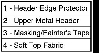 NOTE: This procedure involves installing an edge protector onto the metal upper header panel to prevent it from creating a split or cut through condition on the soft top fabric near the windshield when contact is present.