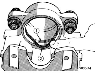 1. Lubricate caliper piston bore, new piston seal and piston with clean brake fluid.